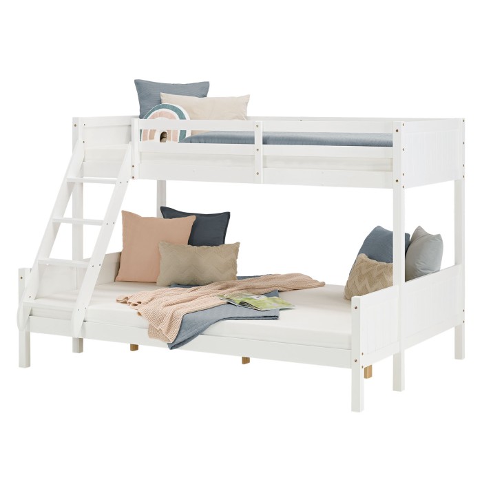 Prisvärd och stabil familjesäng från Homestyle som erbjuder praktiska lösningar för hela familjen. Med mer plats för flera av barnen eller gästerna att sova i, tar den minimal plats jämfört med vad enkelsängar till lika många personer hade tagit. Sängen är vitmålad i heltäckande färg.