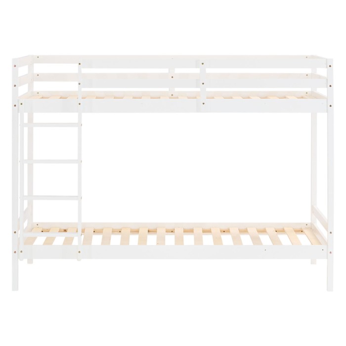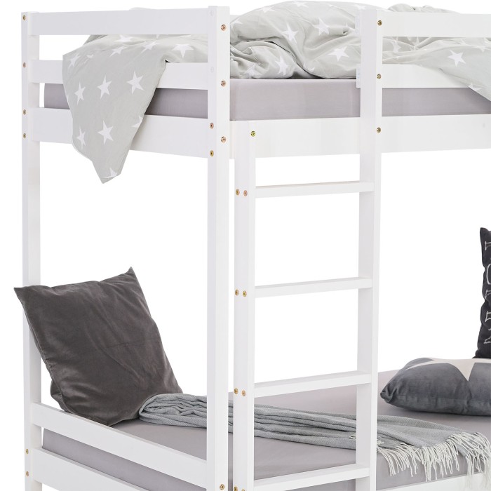 Optimera utrymmet med en stabil våningssäng från Home Style. Perfekt för delade rum eller övernattningsgäster. Den övre sängen erbjuder spännande äventyr för barn, medan båda våningarna garanterar god sömn. Rundade kanter och skyddskanter ger säkerhet. Denna vita säng med synliga träfiber kombinerar praktiskt utrymme med tidlös design.