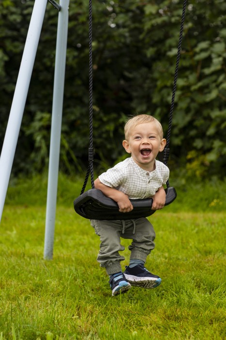 Gungsits i plast från Hörby Bruk i svart. Gungan har 4 fästpunkter i sitsen för extra god balans samt justerbara rep. Plastsits med god UV-beständighet. Metallringar för infästning.