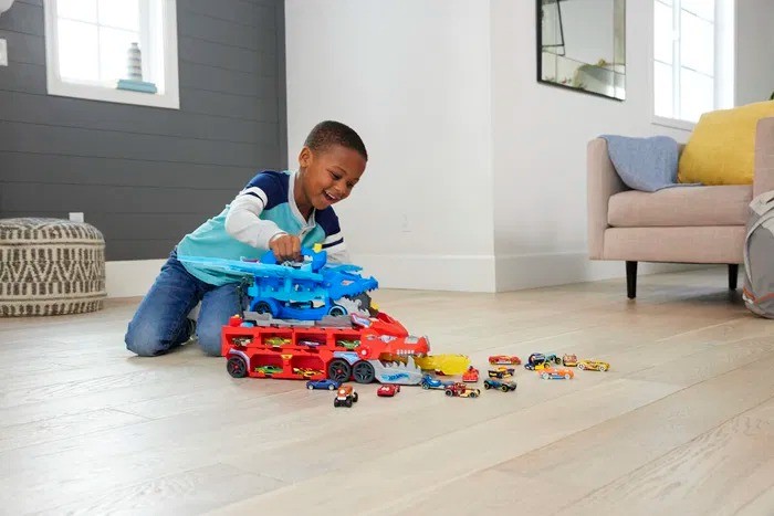 Den avtagbara draken kan ”äta” bilar och förvandlas till en racerbana. Tryck på knappen för att få vingarna att flaxa och låt draken svepa ner över bilarna. Setet inkluderar två bilar och och de två drakarna rymmer tillsammans över 20 bilar. Koppla på Hot Wheels-banor för ännu mer action!