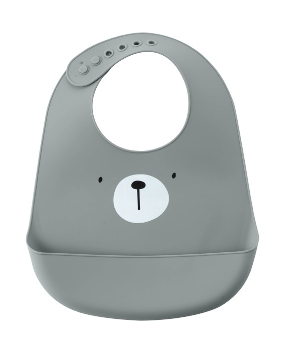 Denna silikonhaklapp fångar upp matspill och är enkel att rengöra – torka bara av med en fuktig trasa eller diska i maskin. Perfekt för att hålla kläderna rena under måltiden.