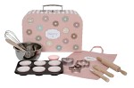Låt fantasin jäsa! Med detta charmiga bakset i mjuka pastellfärger kan barnen öppna sitt alldeles egna bageri. Setet innehåller allt som behövs för en rolig stund i leksaksköket – muffinsformar, skål, slickepott och gulliga kakformar, allt prydligt förpackat i en söt liten väska dekorerad med färgglada donuts.