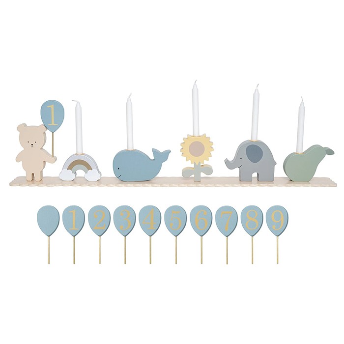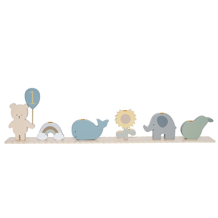 Fira barnets födelsedag med det charmiga födelsedagståget Teddy med vänner från Jabadabado. Tåget består av sex söta figurer med ljushållare – bland annat en nalle, elefant, val och regnbåge. Med sina mjuka färger och fina trädetaljer blir det en vacker och älskad dekoration år efter år.