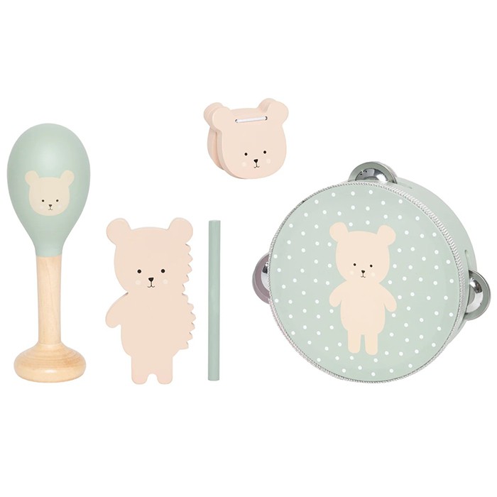 Jabadabado Musikset Teddy är ett charmigt musikinstrumentset för de allra minsta. Setet innehåller tamburin, maracas och kastanjett – alla med söta Teddy-detaljer och mjuka färger. En perfekt introduktion till musik som uppmuntrar barnets rytmkänsla, motorik och kreativitet redan från 18 månader.