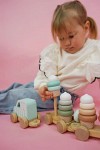 Rulla in i fantasins värld med Jabadabados glasståg! Denna dragleksak i trä kombinerar stapelbara glassar i pastellfärger med ett charmigt tåg – perfekt för små händer som vill leka, stapla och servera glass.