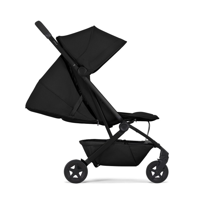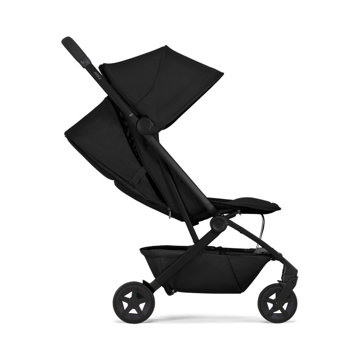 - Justerbart liggläge, fotstöd och sele – allt med en hand