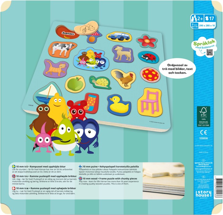 Kärnan Babblarna Träpussel 17-bitar är ett pedagogiskt pussel som hjälper små barn att utveckla sin kognitiva förmåga på ett roligt sätt.