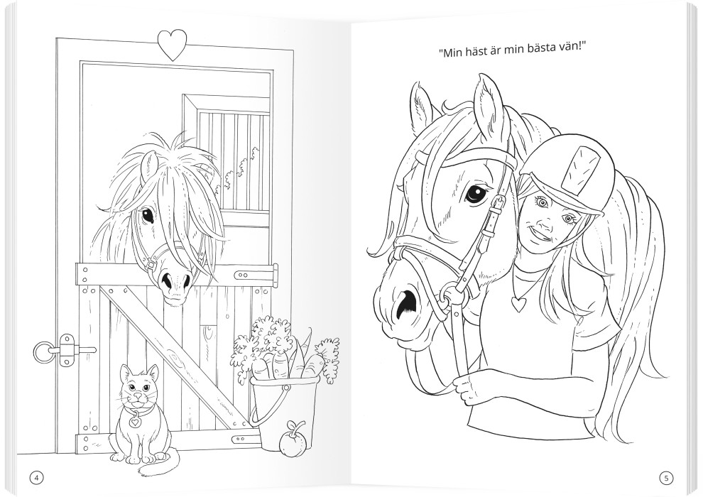 Färglägg fina hästar och pyssla med klistermärken i denna härliga målarbok. Perfekt för alla hästälskande barn som gillar kreativt skapande!