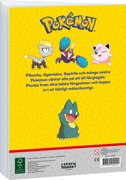 Målarbok med Pikachu, Gyarados, Squirtle och många andra Pokémon. Målarboken består av 24 sidor där du kan färglägga olika motiv med dina favoritfärger.