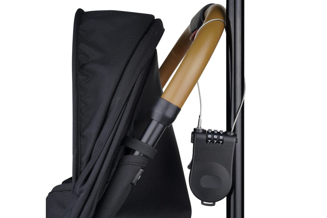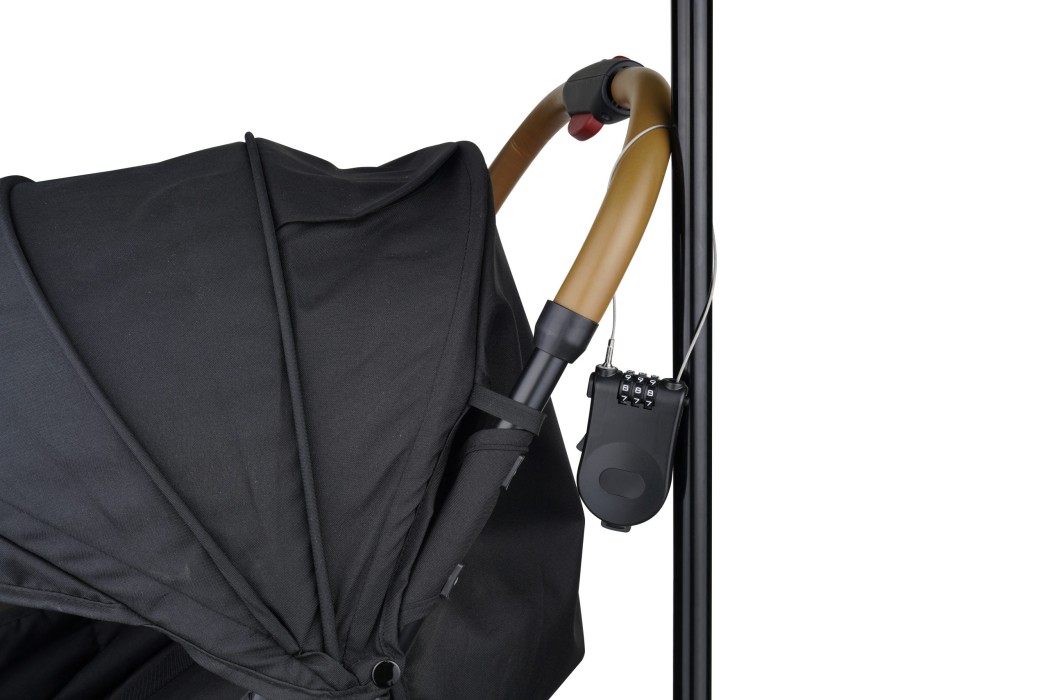 Smidigt barnvagnslås från kaxholmen som gör att du enkelt kan låsa fast din barnvagn efter att du parkerat den. Öppnas med tresiffrig kod så du slipper använda nyckel och det är smidig att förvara i vagnen. Låset har en 90 cm lång vajer.