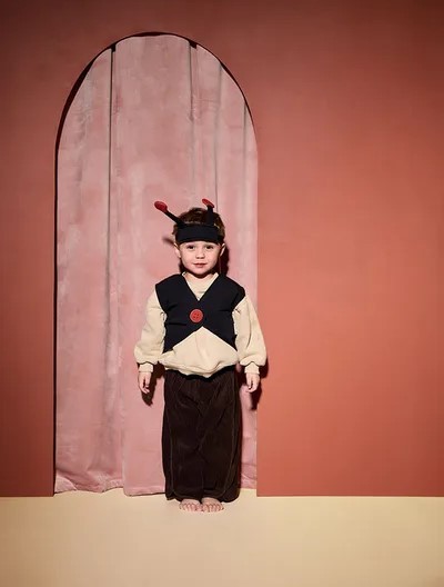 Förvandla leken till ett insektsäventyr med Kids Concept Dress-Up Nyckelpiga! Denna härliga nyckelpigekostym är inspirerad av trädgårdens små beskyddare. Kostymen består av en mjuk svart väst, mörkröda vingar med broderade svarta prickar och ett vadderat pannband med mjuka antenner som ger en extra charmig detalj. Barnen kan föreställa sig att de utforskar trädgården, vilar på blad eller skapar egna små äventyr som nyckelpigor. Västen stängs enkelt med kardborre för smidig av- och påtagning.