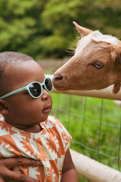 Skydda barnens ögon från solens UV strålar med Kietla ekologiska solglasögon. Bågarna är tillverkade av ett material som är böjbart i alla riktningar och garanterat omöjliga att krossa. De har en kategori 3 lins enligt europeisk standard, vilket innebär att den ger maximalt UVA/AVB/UVC skydd. För att undvika att bli bländad av solen och att näthinnan blir skadad är linsen dessutom försedd med Blue Ray Filter. Dessa strålar är de mest bländande och skadliga för våra ögon. Glasögonen är ergonomiska och bekväma att bära tack vare dess mjuka och lätta båge som inte trycker mot barnets ömtåliga hud vid näsa, öron och tinning. Bågen är gjord i ett stycke därmed finns det inga lösa delar som barnet i misstag kan få i sig och ingen risk för att barnet skall kunna klämma sig på bågens karmar. Bågarna och förpackningen är återvinningbara.