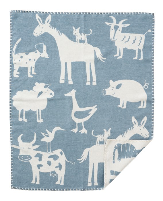 Med sitt fantasifulla mönster som speglar djurlivet på landet bjuder filten in till både lek och vila. Den passar lika bra i barnvagnen som i soffan eller barnets säng.