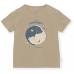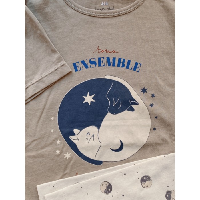 Klassisk, kortärmad t-shirt i borstad, ekologisk bomull från Konges Slöjd. T-shirten är mullvadsbrun och har ett stort, fint kattmotiv framtill som bildar Yin och Yang-symbolen.
