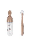 Ett enkelt och praktiskt matningsset tillverkat av livsmedelssäkra material utan BPA. Fyll silikonflaskan med puré och tryck försiktigt tills rätt mängd hamnar på skeden. Skeden är ergonomiskt utformad och lätt att använda. Matningsflaskan levereras med ett praktiskt lock som förhindrar att maten läcker.