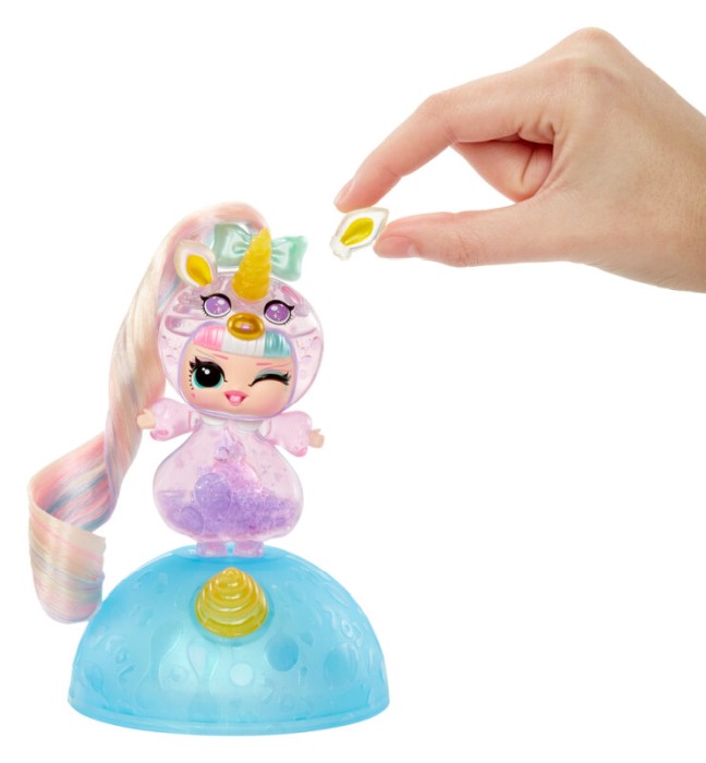 För första gången någonsin kommer L.O.L. Surprise! i ett enhörningstema, och dessa unika dockor erbjuder mer än bara lek. Varje enhörningsdocka är genomskinlig och levereras med tre färgglada "elixir" som skapar en fantastisk lavalampa-effekt när de glider förbi varandra. Dockan har äkta dockhår och en svans, och hela klotet är utrustat med en LED-lampa för att lysa upp upplevelsen, vilket gör den också perfekt som nattlampa.
