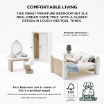 Skapa en mysig och stilfull sovplats för dina dockor med Daisylane Dockhusmöbler Sovrum från Le Toy Van. Detta härliga sovrumsmöbelset är tillverkat av certifierat trä och har en klassisk design i neutrala toner, perfekt för alla barnens dockhus. Det passar utmärkt med hela Le Toy Vans dockhuskollektion och gör en vacker och funktionell detalj i varje miniatyrvärld.