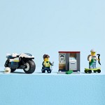I LEGO City Police Polisens motorcykeljakt åker en efterlyst skurk iväg i full fart på en supersnygg skateboard med stulna pengar från en bankomat.