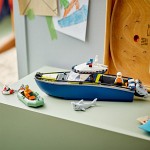 I LEGO City Police Polisens båtjakt flyr en hal skurk i en supersnabb jolle från LEGO Citys hamn med en stulen rubin. Dyk in i all action med poliserna ombord på den kraftfulla polisbåten!