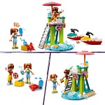 Leo jobbar som strandvakt i setet LEGO Friends Strand – Vattenskoter. Han klättrar uppför stegen och använder kikaren för att hålla koll på havet.
