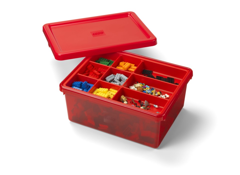 Smart förvaringslåda från LEGO som gör det enklare att hålla ordning på alla LEGO bitar. Lådan har ett övre lager med småfack för de mindre bitarna och ett lock som är lätt att öppna och stänga men som också sitter fast ordentligt.