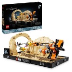 Setet LEGO Star Wars Mos Espa Podrace Diorama låter dig bygga en dynamisk ögonblicksbild av podracet i Mos Espa på Tatooine.