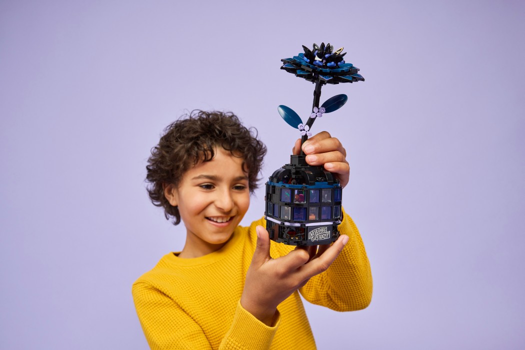 I setet LEGO Wednesday Svart dahlia får du visa upp Wednesdays favoritblomma.
