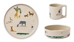 Fin servis i porslin från Liewood. Setet passar för lite större barn och innehåller en tallrik, en skål och en mugg med handtag. Lätt att stapla och tål maskindisk.