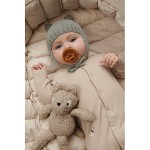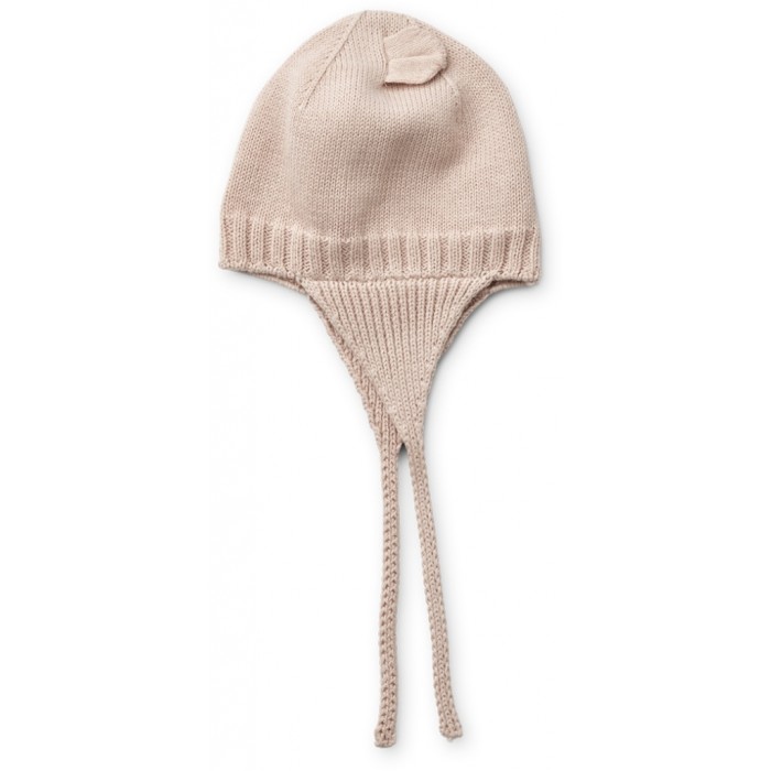 Violet är en mjuk, stickad mössa i 100% ekologisk bomull för de allra minsta från Liewood. Mössan är rund i formen, har gulliga djuröron på ovandelen och skyddande öronlappar med långa knytband.