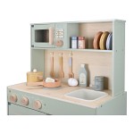 Barn älskar att härma vuxnas vardagliga rutiner, och detta lilla kök kommer att bli en dröm för alla små kockar. Det inspirerar till fantasifullt rollspel, kreativitet, motoriska färdigheter och fantasi. Det robusta träköket i moderna färger skapar en fin lekplats i barnrummet, men passar även bra i vardagsrummet.