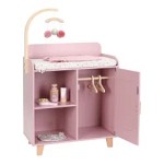 Dessutom följer det med en blöja, en sovpåse och söta klädhängare för snygg förvaring av dockans kläder. Skåpet erbjuder extra förvaringsutrymme för allt nödvändigt, så dockan alltid kan hållas väl omhändertagen. Perfekt för docklek, fantasilek och rollek i barnrummet.