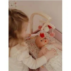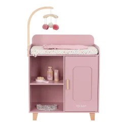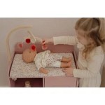Ge dockan den bästa vården med detta charmiga skötbord! Setet innehåller allt som behövs för fantasifull lek och omsorg, inklusive en mobil, en mjuk och härlig skötbädd med drömmigt motiv samt olika vårdredskap i trä.