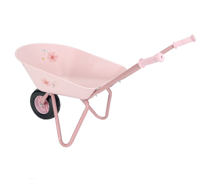 Gör trädgårdsleken extra rolig med Little Dutch skottkärra från Fairy Garden-kollektionen! Tillverkad i robust metall med handtag och hjul i plast, perfekt anpassad för barn. Den rymliga korgen rymmer jord, växter eller leksaker och gör varje trädgårdsäventyr till en lek.