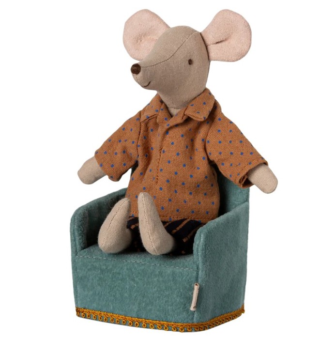 Maileg Fåtölj Mus (Mint) är den perfekta viloplatsen för dina små Maileg-vänner.