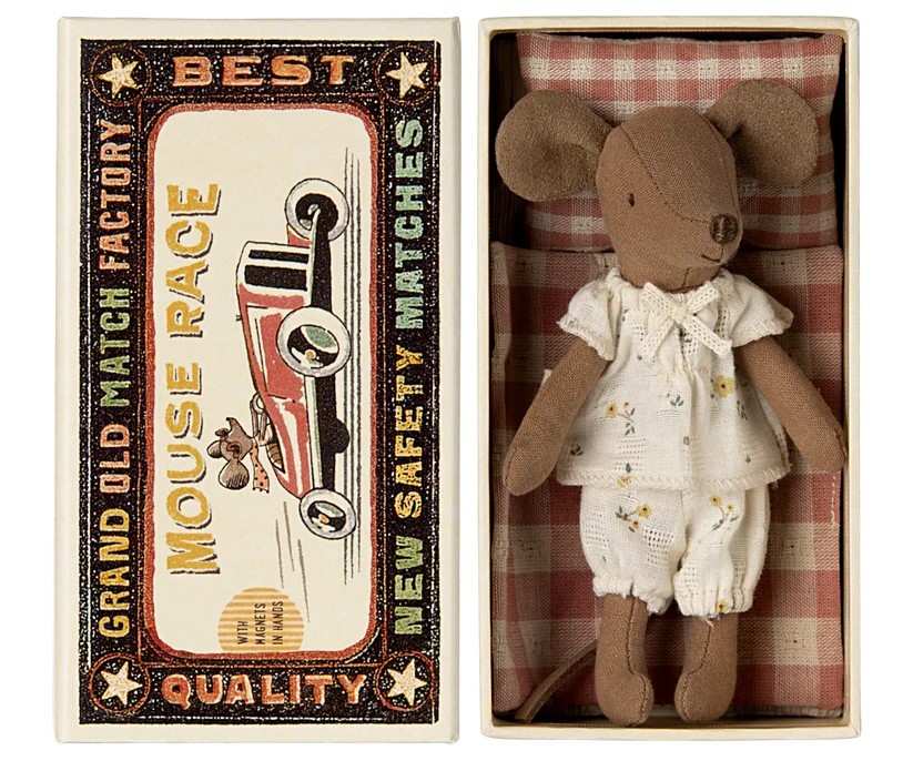 Upplev Maileg Storasystermus i tändsticksask – ett tidlöst Maileg-favoritobjekt som är redo för ändlösa äventyr och vilsam sömn i sin charmiga tändsticksask.