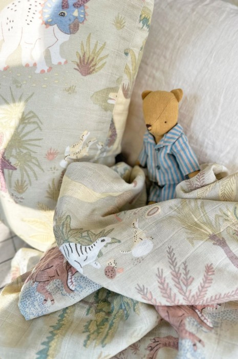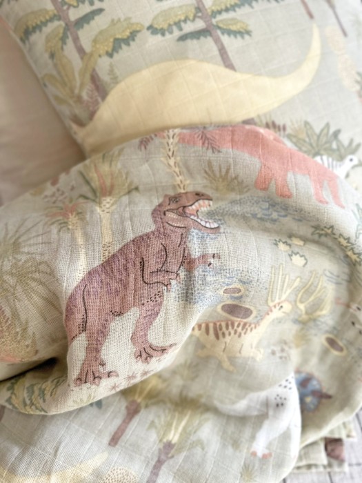 Majvillan Muslinfilt 130x180 cm Dinosaur Vibes (Green)
