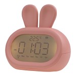 Rosa kaninalarmklocka – Barnvänlig USB-C-laddad väckarklocka