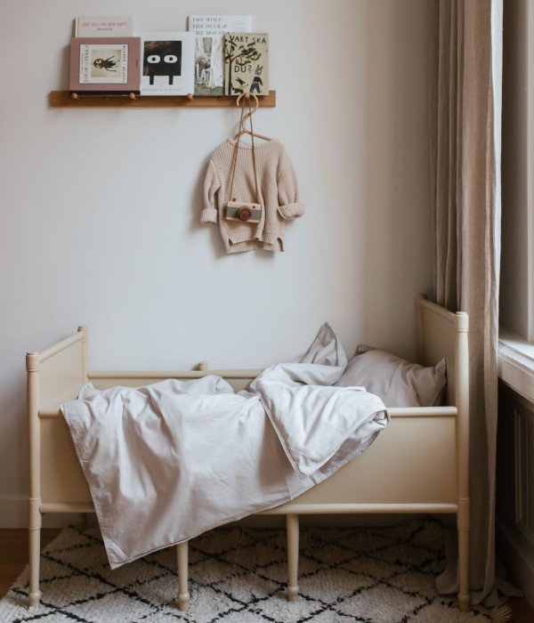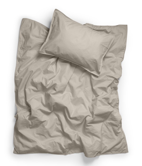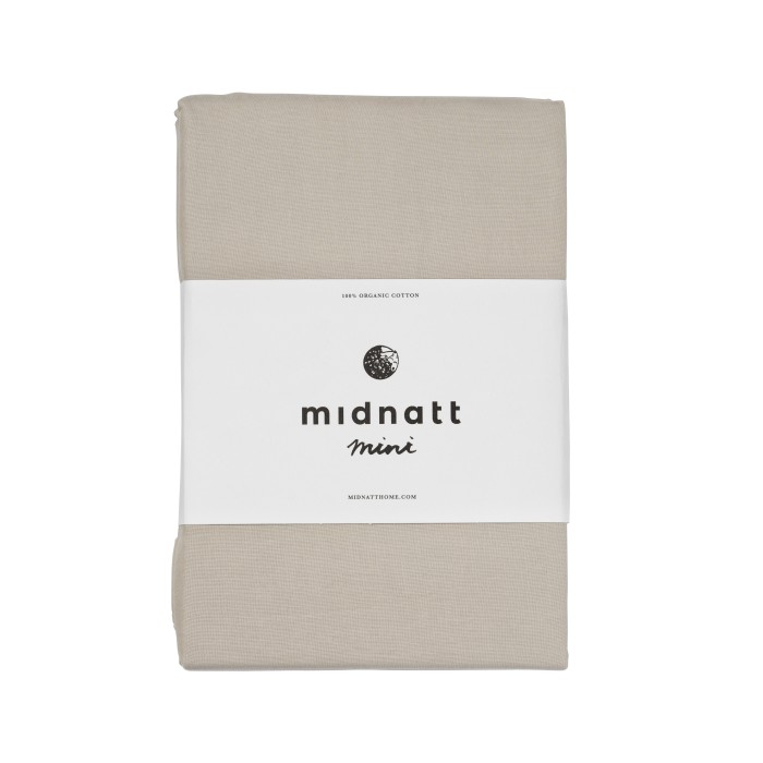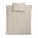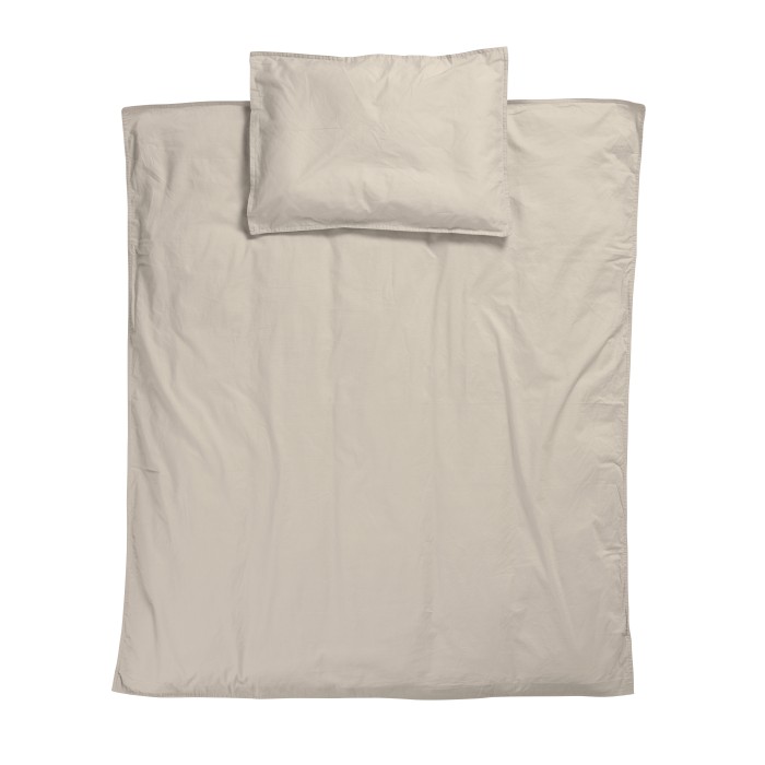 Bäddset i en mjuk grå/beige nyans för spjälsäng från svenska varumärket Midnatt. Setet innehåller ett påslakan och ett örngott sydda i en stentvättad tuskaft som ger en mjuk och lite krispig känsla.