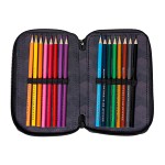 Upptäck det ultimata pennfodralet för byggmästare och äventyrssökare, Minecraft Dubbelt Pennfodral! Med en stilren design och två praktiska fack rymmer det allt ditt barn behöver för att skapa och leka. Setet innehåller en A6-anteckningsbok, pennvässare, linjal 15 cm, 12 färgpennor, 2 pennor och ett suddgummi. Perfekt för skolan, pysselstunden eller när fantasin får flöda fritt.