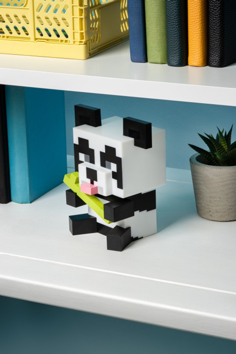 Lampan är 15 cm hög och designad för att likna den populära pandakaraktären från Minecraft, hållande en bambustav. När lampan är påslagen, skapar den ett tröstande ljus som är perfekt för avkoppling.
