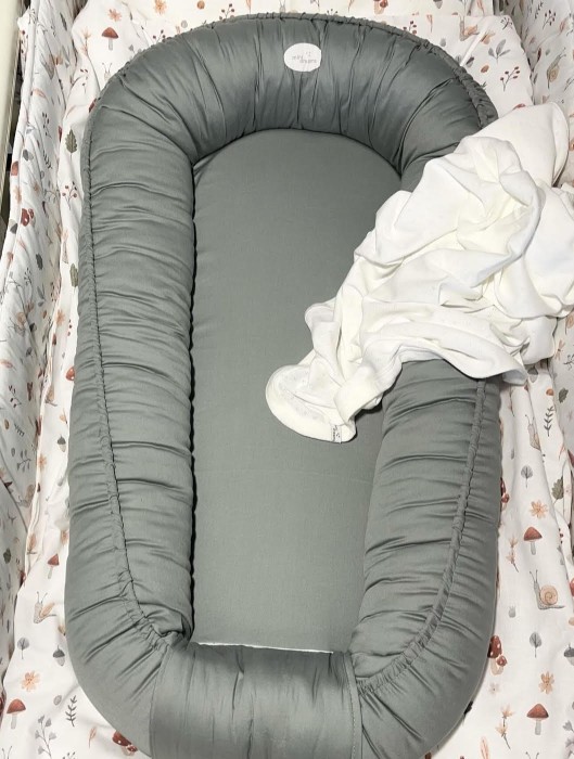 Mysigt babynest från Mini Dreams. Babynestet har höga kanter och en tjock madrass och är perfekt att ha i spjälsängen för att göra den mer ombonad och trygg. Denna passar att använda från nyfödd upp till ca 6 månader. Nestet har snören för att anpassa storleken men för extra säkerhet finns en ficka för att gömma banden.