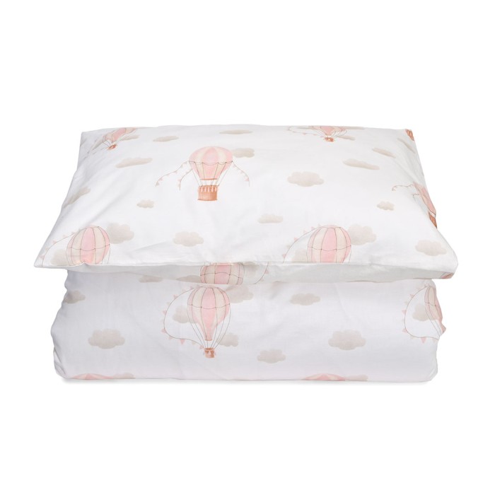 Mjukt påslakanset med ballongmönster från Mini Dreams. Setet innehåller ett påslakan och örngott och är tillverkat av öko-tex certifierad bomull.