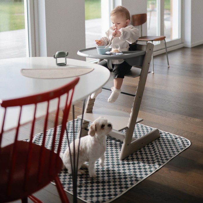 Skydda ditt golv från spill och smulor med Mushie golvskydd, perfekt för alla barnfamiljer! Detta stilrena och funktionella underlägg placeras under barnstolen för att fånga upp matrester och spill, vilket gör städningen enklare och mer effektiv.