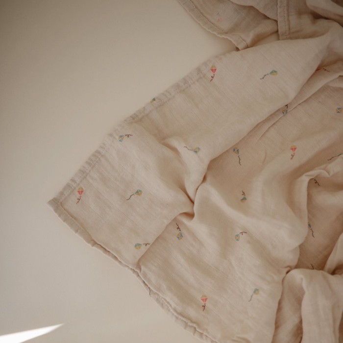 Mjuk babyfilt i bomullsmuslin från Mushie med gulligt mönster
