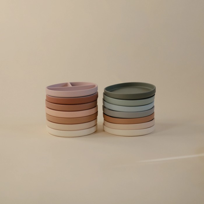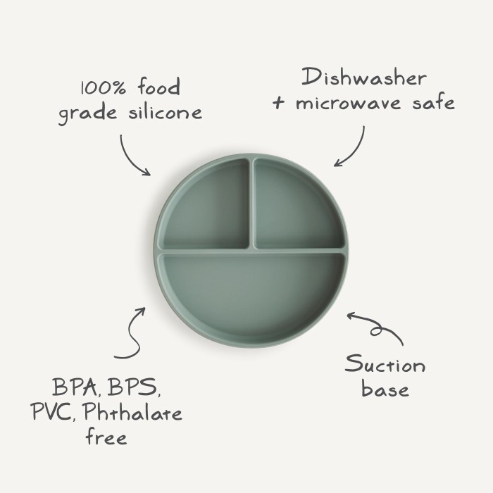 Mushie Silikontallrik med fack, tallrik med sugpropp för små barn