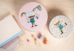 Dessa runda plåtburkar blir en fin detalj i barnrummet för att organisera små prydnadssaker och skatter eller för att förvara kakor och andra godsaker i. Tjolahopp tjolahej tjolahoppsansa!