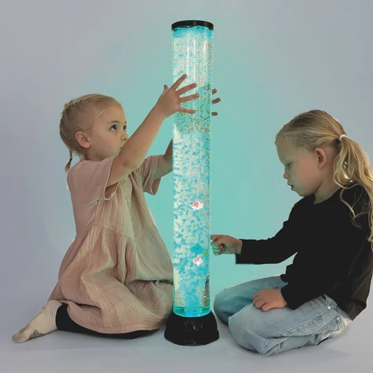 MyPauze Bubbelrör med fiskar (100 cm, ø 15 cm) är ett sensoriskt hjälpmedel som kombinerar färgglada bubblor och flytande fiskar i rörelse för att skapa en lugn och fascinerande upplevelse.