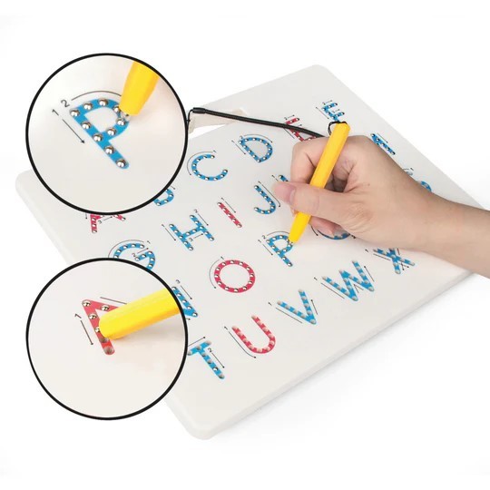 Med hjälp av en magnetpenna lyfter barnet små kulor i brädan för att forma bokstäver – ett lekfullt verktyg som gör inlärning både taktil och visuell. Perfekt för att träna bokstavsigenkänning, finmotorik och skriva sina första ord.