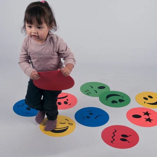 Varje platta visar ett tydligt känslouttryck och uppmuntrar barn att identifiera, förstå och prata om känslor på ett lekfullt sätt. Perfekta för samtalsövningar, känslolekar eller rörelseaktiviteter i förskola, skola eller hemma.