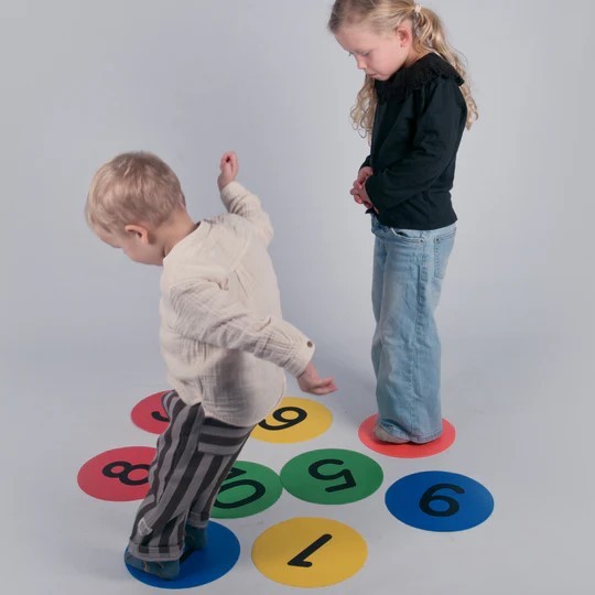 Varje platta är märkt med en siffra från 1 till 10 och kan användas till allt från hinderbanor och räknelekar till rörelseövningar och samarbetslekar. Perfekta för både inom- och utomhusbruk i förskola, skola eller hemma.